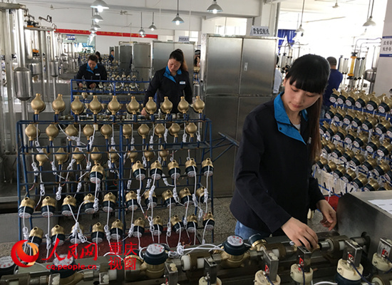 5月17日,工作人員在對重慶智能水表集團有限公司生產的水表進行質量檢定。經最終檢定合格的水表,在出廠前必須佩掛首檢標志。