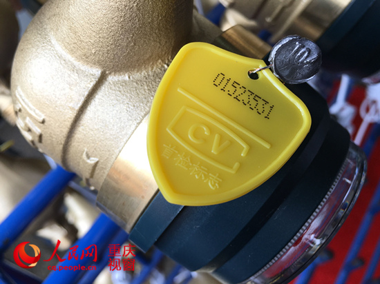 在該水表質量管控的最后一個環節,記者看到,工作人員正將一個黃色盾牌形狀的“首檢標志”懸掛在檢測合格的水表上。現場工作人員介紹,有了這塊標志后,就意味著它可以進入市民家庭使用了。
