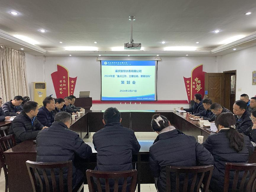 重慶智慧水務(wù)有限公司召開2024年度工作策劃會,公司領(lǐng)導(dǎo)、全體中層干部及助理、營銷大區(qū)負(fù)責(zé)人參加會議。